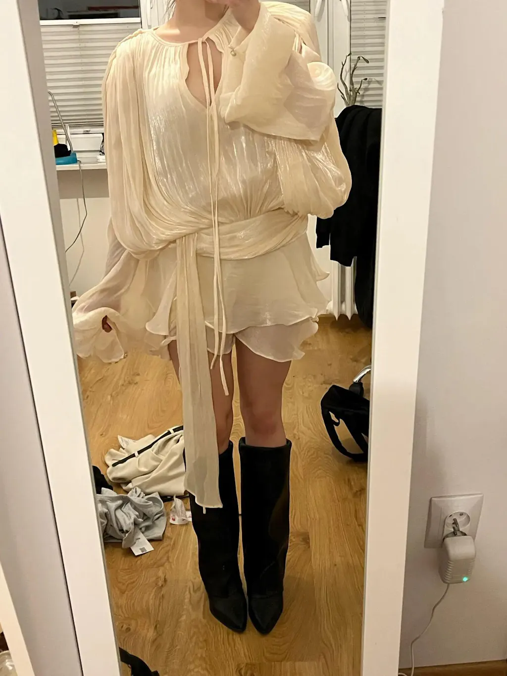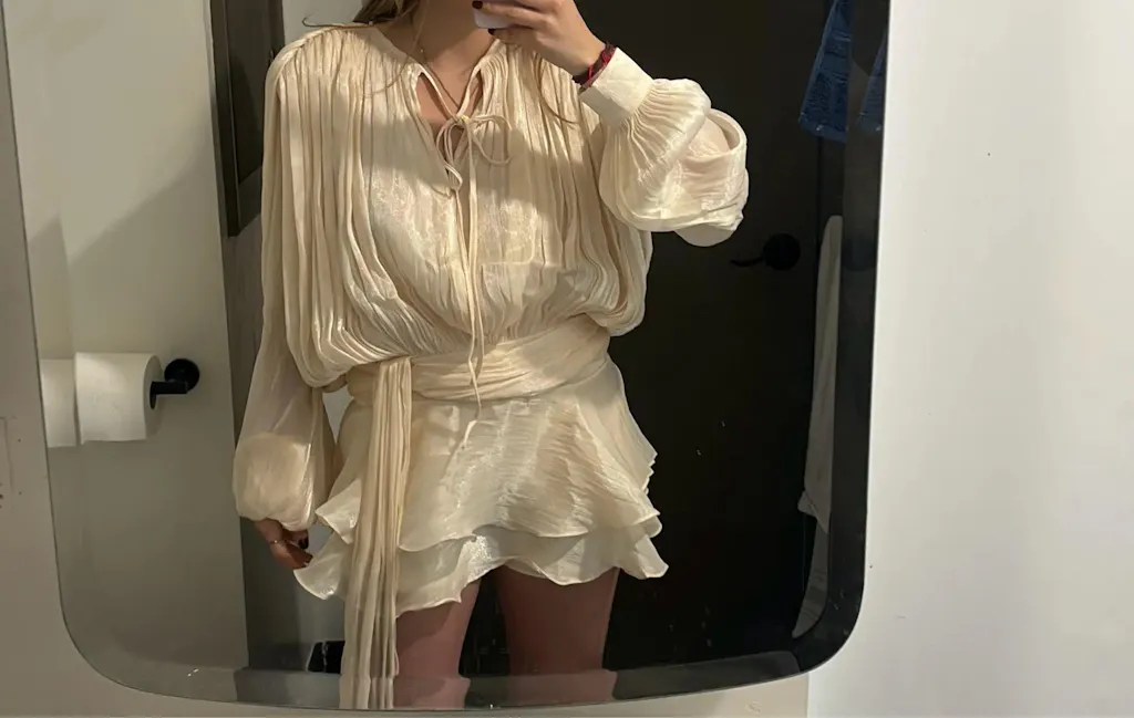 - Manga Lanterna Volumosa: O destaque da peça é a manga longa e volumosa, no estilo lanterna. Ela adiciona um toque de drama e romantismo ao visual, enquanto o tecido fluido garante que o movimento seja sempre leve e elegante.