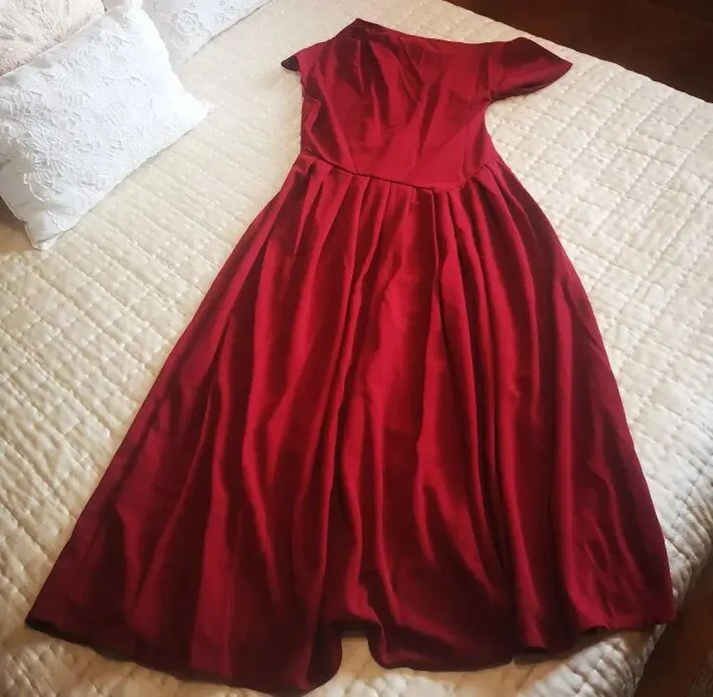 - Silhueta e Caimento: O corte Fit & Flare realça a cintura em estilo Império e se abre em uma saia fluida, criando um movimento dramático e elegante. A modelagem solta na saia oferece conforto e liberdade, enquanto a parte superior tem um ajuste regular.