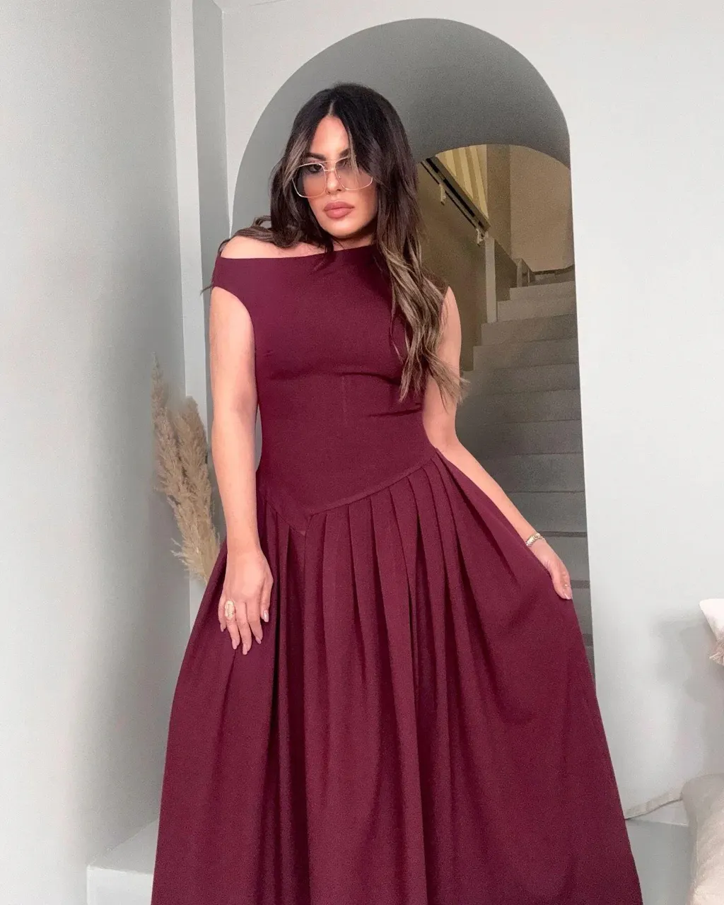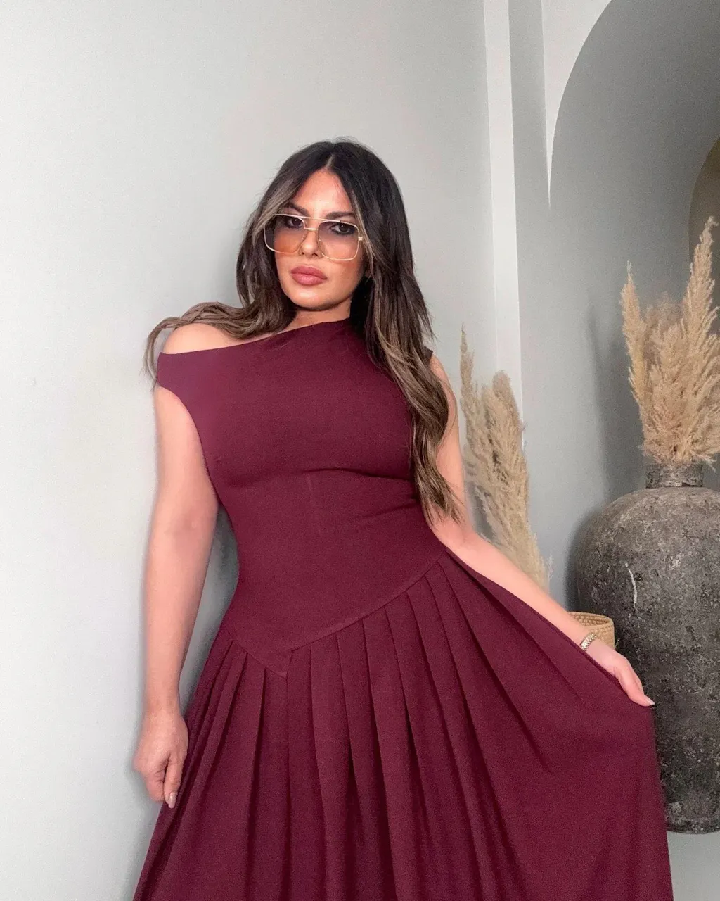 Vestido Midi Assimétrico Plissado Zunna Lorena