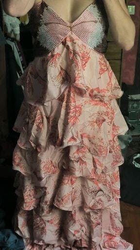 O Amora é a peça ideal para você ser o centro das atenções com elegância e leveza. Com sua saia em camadas de babados fluidos, ele cria um movimento espetacular, perfeito para festas e eventos onde a presença é tudo. O design combina a sensualidade das alças finas com o volume romântico da saia, garantindo um visual inesquecível.