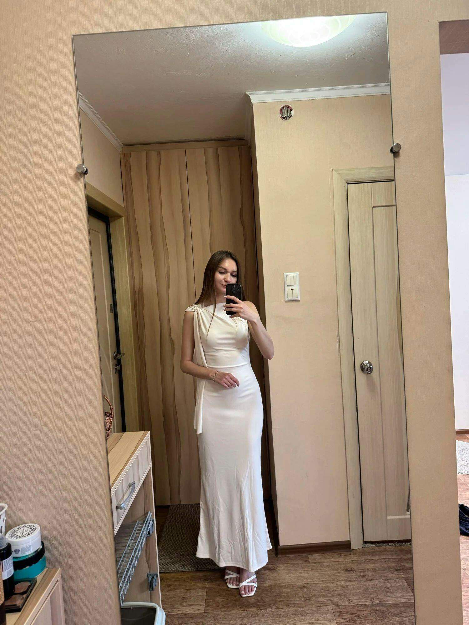 - Silhueta e Caimento: A modelagem A-Line com um ajuste fino abraça o corpo de forma elegante até a altura do tornozelo. A cintura império e o tecido levemente elástico criam um caimento impecável que alonga a figura, valorizando suas curvas.