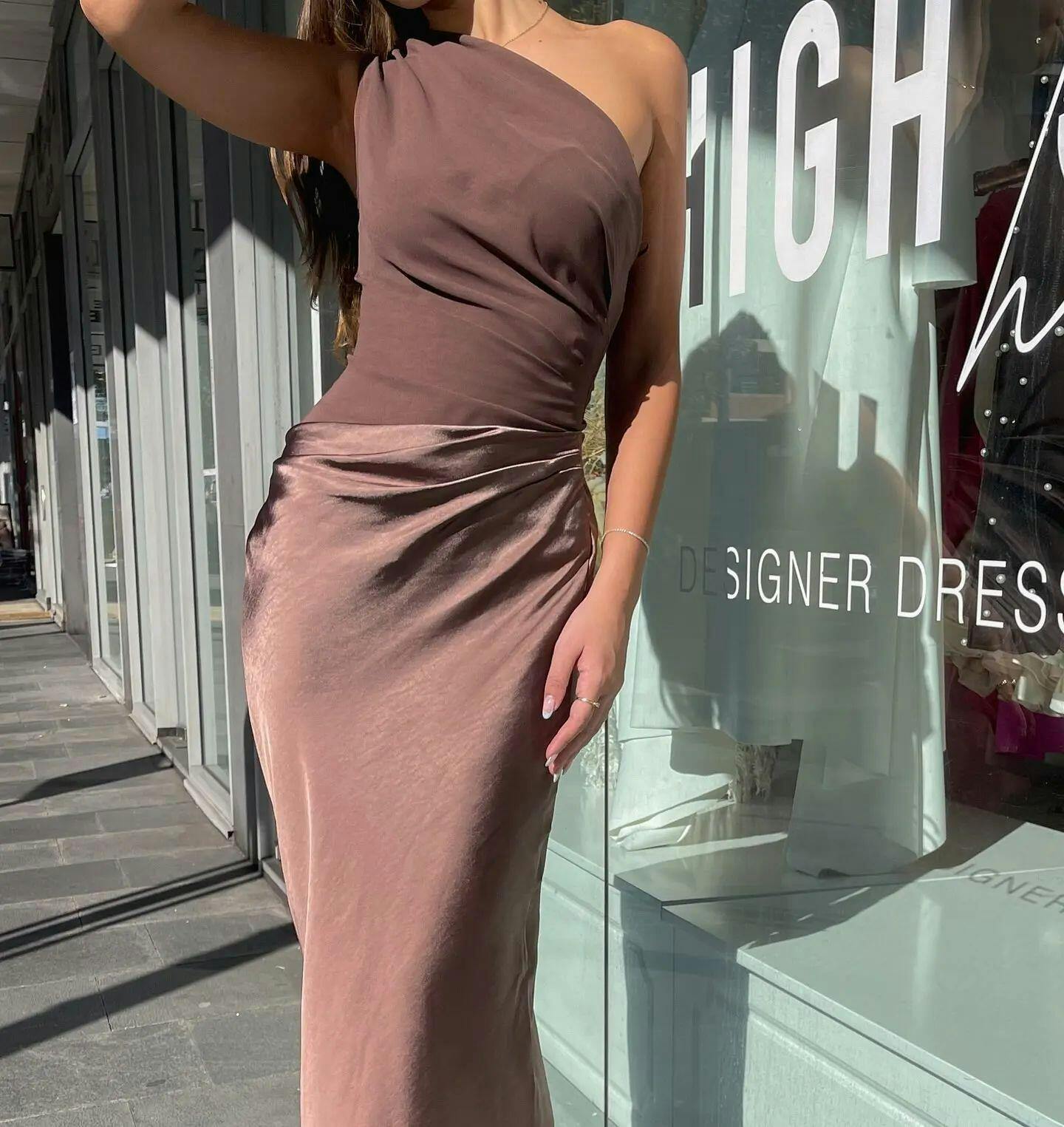 - Ombro Único Sofisticado: O decote diagonal e o estilo de um ombro valorizam o colo com elegância e um toque de originalidade, sendo a expressão da feminilidade que não precisa de excessos.