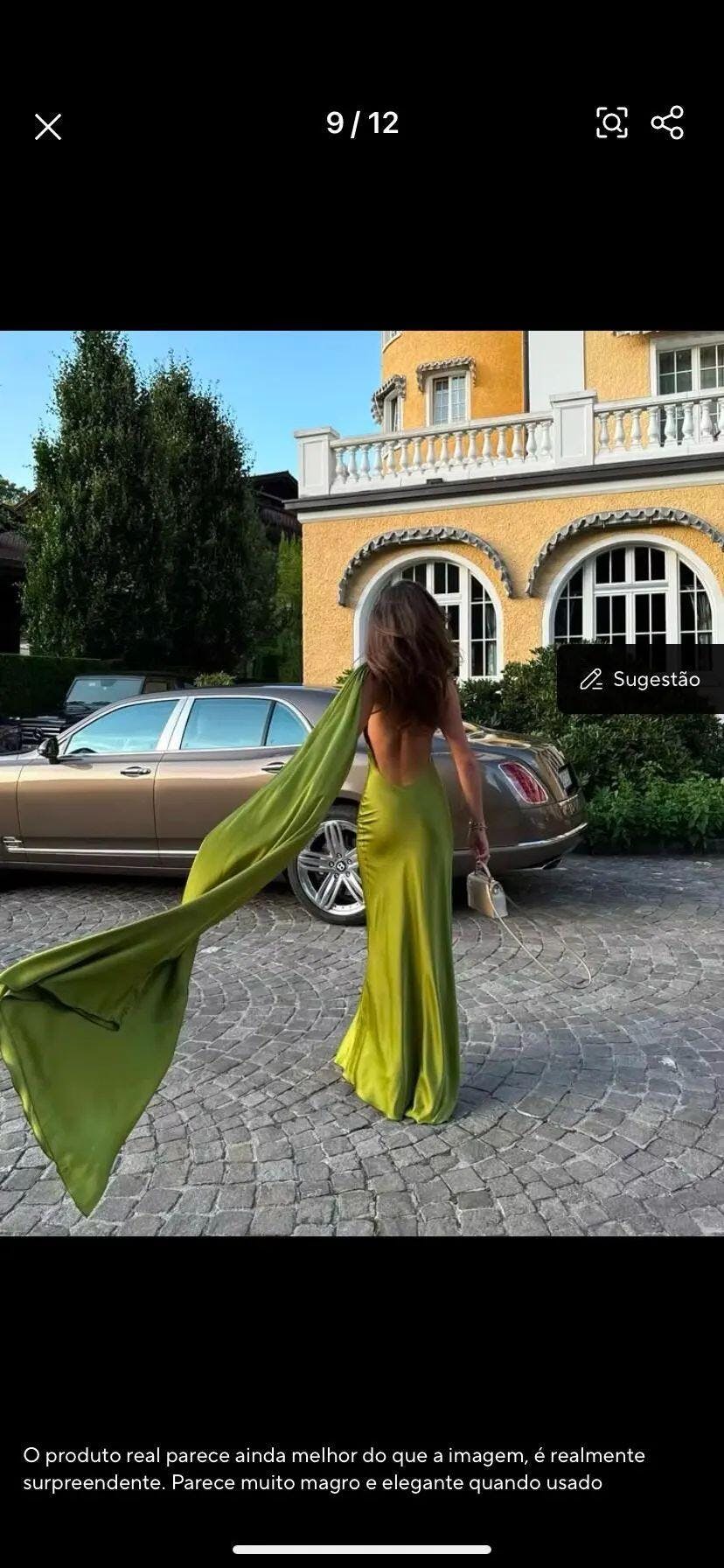O Cora é o vestido que te transforma em uma diva moderna. O tecido liso e brilhante, com caimento impecável, cria uma silhueta alongada e elegante. O destaque é a capa longa que se estende a partir da gola, garantindo um visual dramático e espetacular com muito movimento. Perfeito para quem busca um look sofisticado e memorável.
