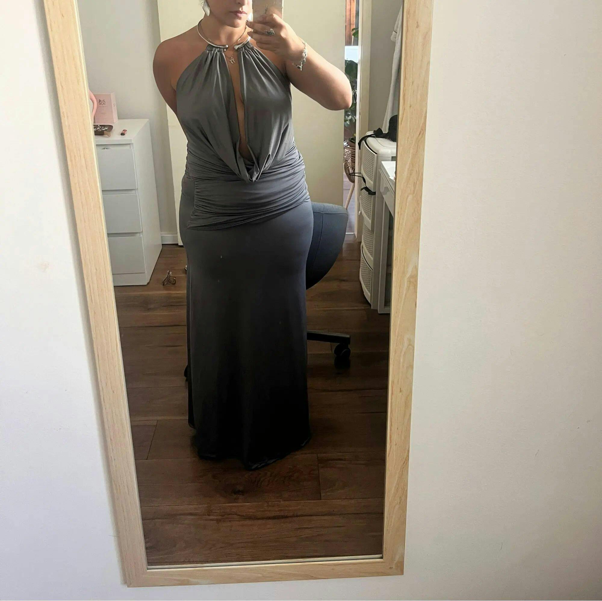 O Felícia combina o glamour do plissado com o charme do decote halter. O tecido fluido cria uma silhueta elegante que valoriza o movimento e o corpo com leveza. É a escolha certa para noites de gala, coquetéis e eventos formais.