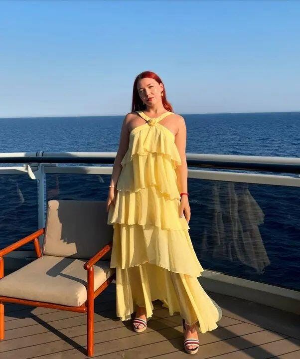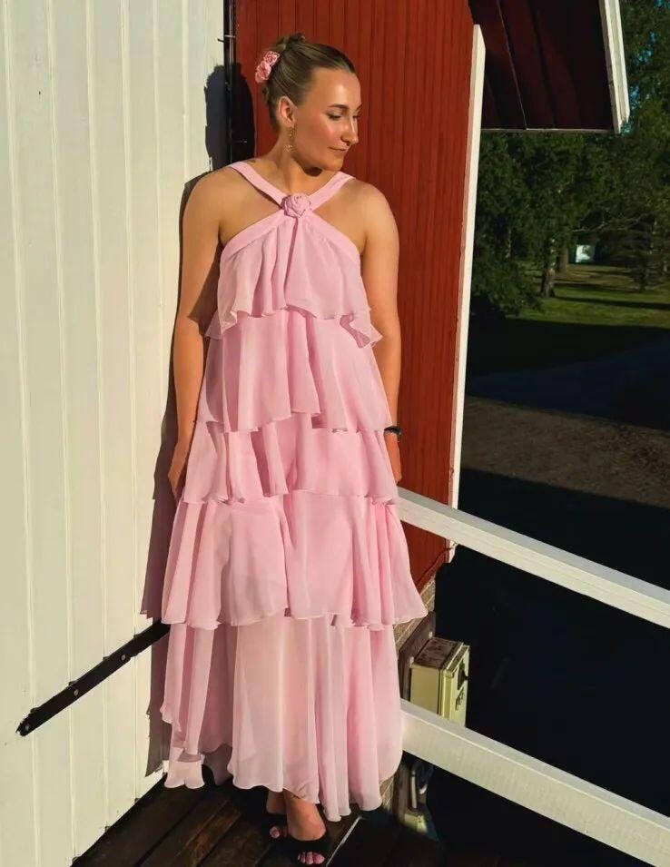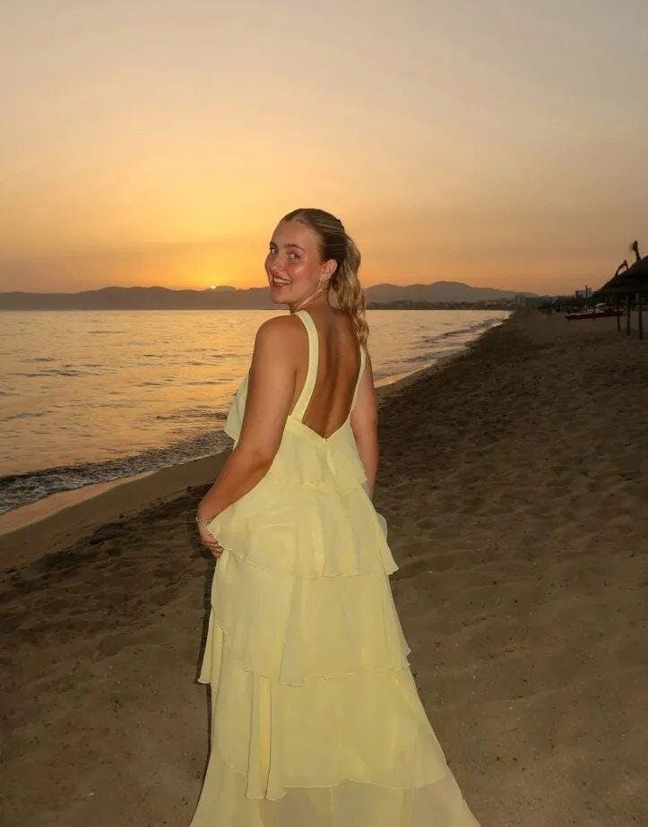 Inspirado na fluidez da natureza e na alegria dos dias de sol, o Vestido Flora é a escolha perfeita para quem busca um visual marcante e arejado. Suas camadas em cascata e estampa sutil criam um efeito visual de puro movimento, garantindo que você se sinta confiante e deslumbrante em qualquer ocasião, de um almoço ao ar livre a um evento especial.