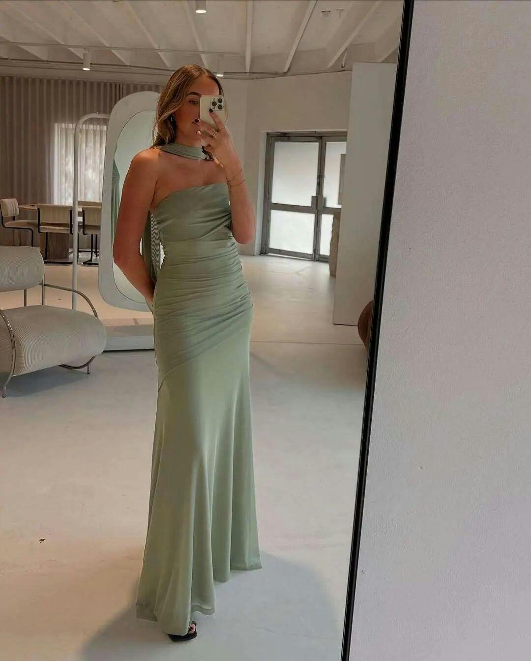 - Caimento Impecável: A modelagem fina e a cintura natural garantem que o vestido se ajuste perfeitamente, proporcionando uma linha limpa e elegante do busto aos pés.
